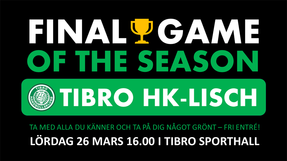 Lördag 26 mars kl. 16:00 spelar Tibro HK:s seniorer sin sista match för säsongen. För motståndet står HK Lidköping. Vi hoppas det blir en härlig inramning som kan hjälpa oss att kröna denna säsongen med en sista vinst. Tjejerna i laget hoppas med din hjälp kunna bjuda på sin absolut bästa handboll. Vill det sig väl kommer publiken att bjudas på några riktigt spektakularä mål och målgester som vi tränat lite extra på! Ta med alla du känner, klä er i grönt och ta med er något som låter. Tillsammans skapar vi en minnesvärd handbollsupplevelse! TACK FÖR ERT STÖD! Tibro HK 25 mar 2022 0kommentarer